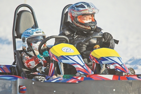 松花江上風馳電掣 冰雪汽摩園成游客“新寵”