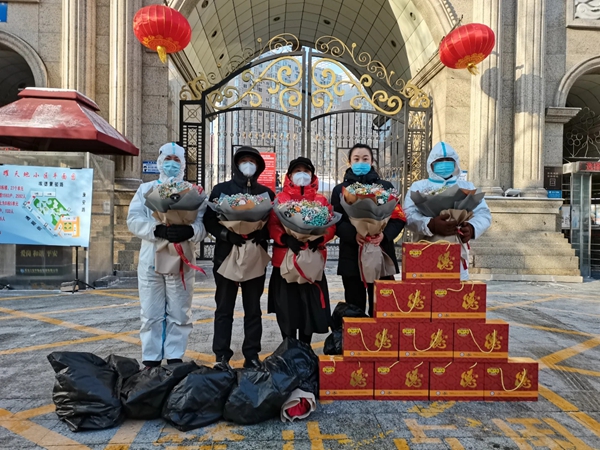 黑龍江經濟網訊(靳超 記者崔冰)慰問暖人心,關懷顯真情。2月3日,黑龍江省誠信建設促進會會長張波、副會長于海波帶領秘書處人員來到哈市榮耀天地小區(qū)看望慰問堅守在抗疫一線的寶宇物業(yè)管理有限公司的工作人員,傳遞殷切關懷。張波會長和物業(yè)工作人員們深入交流,詳細了解了他們近期的工作和生活情況,并為他們送來紅腸及由哈爾濱市萬花集鮮花店捐贈的鮮花等物資。