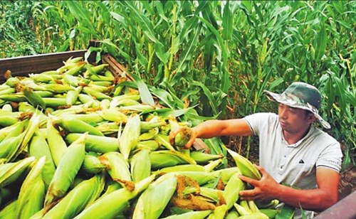 北大荒哈爾濱現(xiàn)代服務(wù)有限公司紅旗分公司騰碩達農(nóng)業(yè)發(fā)展有限公司工人正在采收青玉米。