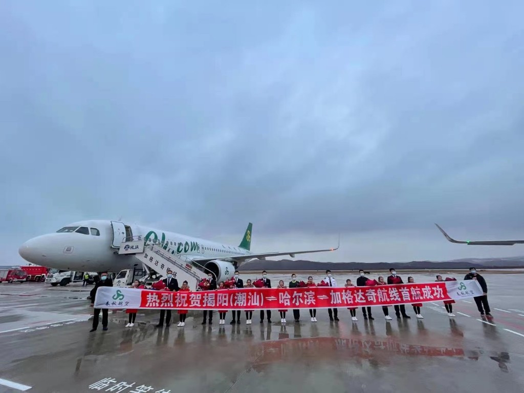 3月29日17時(shí)15分,在陣陣的引擎轟鳴聲中,由廣東揭陽(yáng)(潮汕)飛往加格達(dá)奇的首個(gè)航班準(zhǔn)時(shí)平穩(wěn)地降落在加格達(dá)奇嘎仙機(jī)場(chǎng),標(biāo)志著加格達(dá)奇—哈爾濱—揭陽(yáng)(潮汕)航線(xiàn)首航成功。30日,春秋航空還將首航加格達(dá)奇—哈爾濱—上海航線(xiàn)。