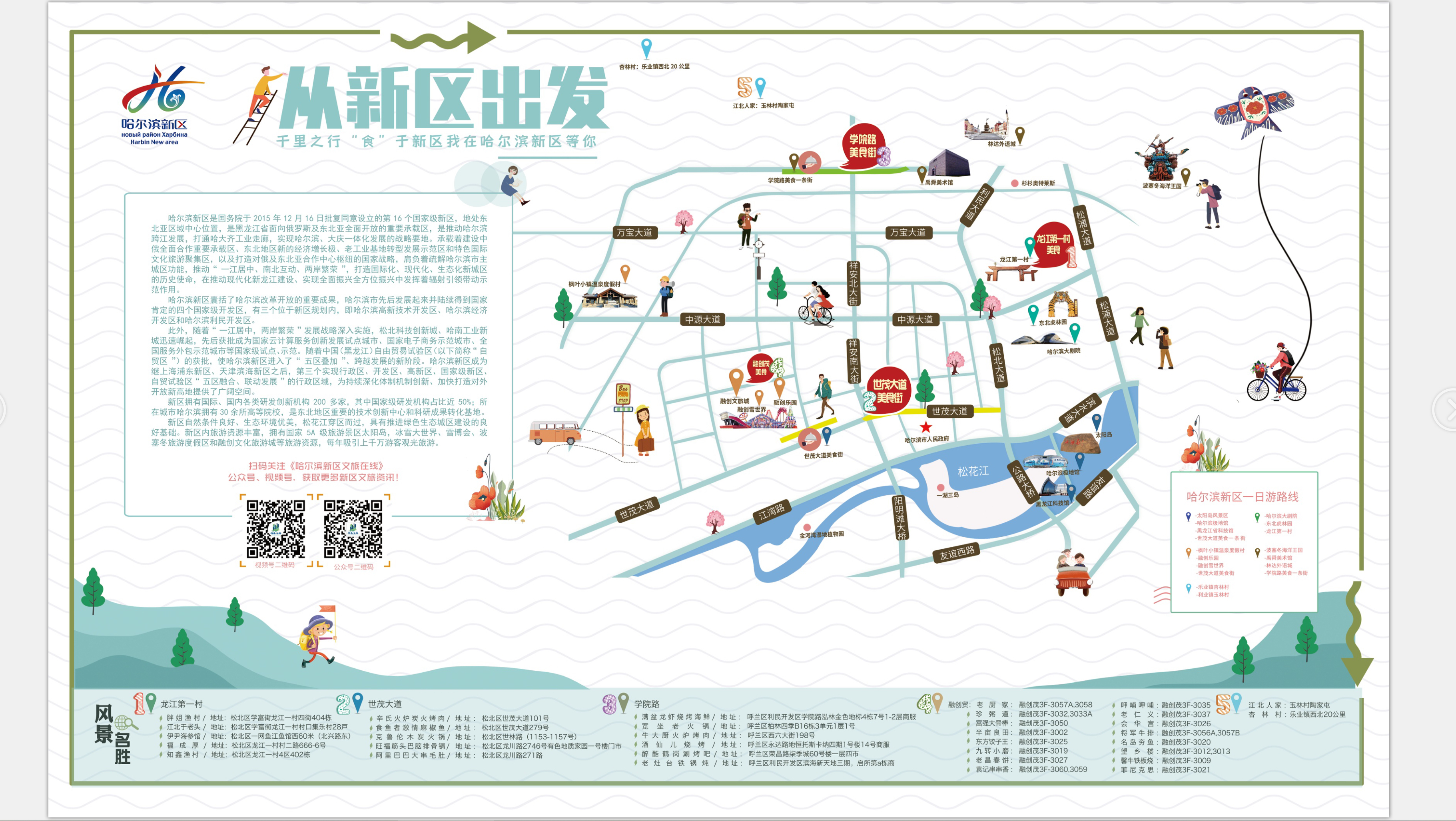《哈爾濱新區(qū)美食地圖》以新區(qū)特色美食為主題,突出“美食+旅游”的特色結合,旨在為游客推薦新區(qū)多種多樣的優(yōu)質美景美食,在豐富游客度假體驗的同時,叫響本土美食品牌,并推出五條“美食+”旅游度假一日游路線。通過《哈爾濱新區(qū)美食地圖》,市民和游客可以一站式了解新區(qū)的“吃住游娛購”。