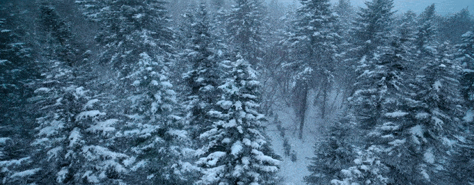 大幕拉開,風雪交加,一望無際的茫茫林海里,是故事的開局之地。航拍第一視角的真實感鏡頭為我們呈現(xiàn)出開局的困頓感和林海雪原環(huán)境的壯美大氣。
