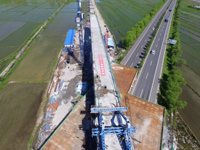 中鐵二十局佳鶴鐵路二分部經(jīng)理魏偉介紹,作為全線跨度最大的連續(xù)梁,該橋跨越鶴大高速公路,施工中需分節(jié)段澆筑混凝土,技術標準要求高、安全風險大。