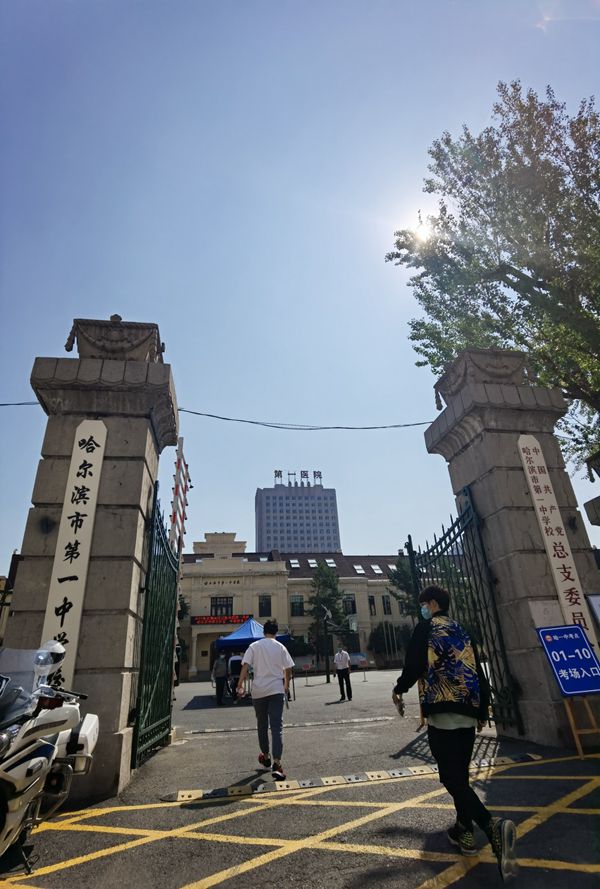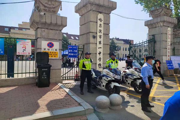今早8點(diǎn),哈爾濱市第一中學(xué)門前雖然人頭攢動(dòng),但車減速,人低語。