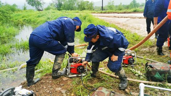 呼源鎮(zhèn)立即上報,呼中區(qū)主要領導得知后立即趕赴現(xiàn)場親自指揮,呼源鎮(zhèn)聯(lián)合大興安嶺地區(qū)森林消防支隊呼中大隊和呼中城鎮(zhèn)消防救援大隊,共出動人員30余人,結合地形地貌采取多設備抽水排澇的方式,分成5組,經(jīng)過4臺2噸抽水設備、1臺4噸抽水設備2個多小時的不間斷作業(yè),水位明顯下降,守護了用電安全。