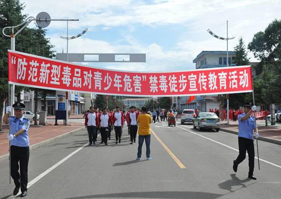 呼中區(qū)禁毒委組織禁毒成員單位,開展以“防范新型毒品對青少年的危害”為主題的禁毒徒步宣傳活動