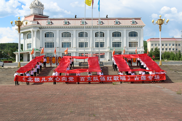 開展“高歌頌黨恩 永遠(yuǎn)跟黨走”唱紅歌活動(dòng)。在生產(chǎn)一線、機(jī)關(guān)科室的400多名黨員干部、職工群眾用百米長幅歌頌黨、感謝黨,齊聲高唱《沒有共產(chǎn)黨就沒有新中國》《歌唱祖國》,激情嘹亮的歌聲唱出了對(duì)中國共產(chǎn)黨的熱愛和禮贊。全體隊(duì)員還用黨旗和紅綢擺出了100的造型,以特殊的方式向建黨100周年獻(xiàn)禮,充分展現(xiàn)了新時(shí)代林區(qū)礦山人愛黨愛國的精神風(fēng)貌。