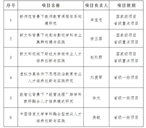 截止至8月5日,教育部首批新文科研究與改革實(shí)踐項(xiàng)目立項(xiàng)名單公示期結(jié)束,哈爾濱師范大學(xué)3項(xiàng)省級(jí)重點(diǎn)項(xiàng)目全部獲批國(guó)家級(jí)立項(xiàng),在省內(nèi)高校中名列前茅。這3項(xiàng)國(guó)家級(jí)項(xiàng)目分別是:辛寶忠教授主持的教育學(xué)領(lǐng)域新文科建設(shè)實(shí)踐項(xiàng)目《新師范背景下教師教育課程體系構(gòu)建研究》、安立國(guó)教授主持的藝術(shù)字領(lǐng)域新文科建設(shè)實(shí)踐項(xiàng)目《新文科背景下戲劇與影視學(xué)科專業(yè)集群構(gòu)建與實(shí)踐》、趙秋野教授主持的新文科復(fù)合型人才培養(yǎng)創(chuàng)新與實(shí)踐項(xiàng)目《新文科視域下斯拉夫?qū)W微專業(yè)人才培養(yǎng)創(chuàng)新與實(shí)踐》。