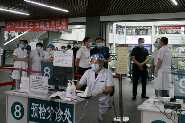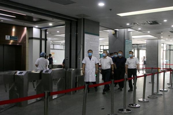 趙煒明一行先后到附屬第一醫(yī)院門診預(yù)檢分診處、呼吸科門診、耳鼻咽喉科門診、心血管病一科病房等處進(jìn)行實(shí)地檢查,并聽(tīng)取附屬第一醫(yī)院黨委書(shū)記李建民關(guān)于院感防控工作的詳細(xì)匯報(bào)。