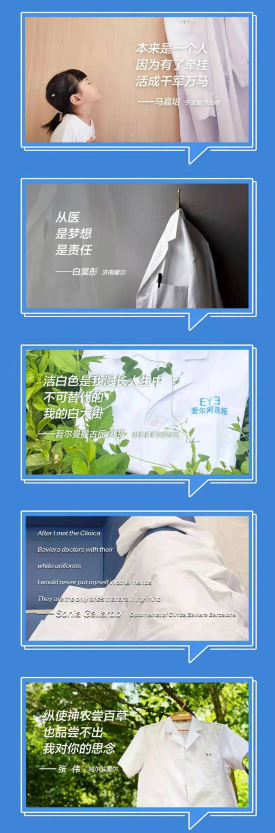 自2018年設(shè)立“醫(yī)師節(jié)”以來(lái),醫(yī)師節(jié)已走過(guò)四個(gè)春秋冬夏。為感激白衣天使的辛勤付出,為致敬醫(yī)生家屬的默默支持,愛爾眼科特策劃《Hi,親愛的白大褂》系列活動(dòng)。在微電影展出中,用三個(gè)視頻,三個(gè)視角,展示那些不為人知的醫(yī)患故事,記錄那些點(diǎn)點(diǎn)滴滴的感動(dòng)與溫情。