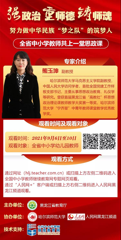 據(jù)了解,自9月6日至10日省教育廳將組織開(kāi)展“全省中小學(xué)教師共上一堂思政課”活動(dòng),將邀請(qǐng)專(zhuān)家學(xué)者就提升思想政治素質(zhì)和師德水平、更好擔(dān)負(fù)起立德樹(shù)人根本任務(wù)為全省中小學(xué)教師授課。本次活動(dòng)將以線(xiàn)上課堂形式舉辦。參加人員通過(guò)全國(guó)中小學(xué)教師繼續(xù)教育網(wǎng)專(zhuān)題網(wǎng)頁(yè)收聽(tīng)收看。