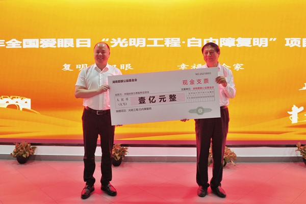 今年愛眼日“光明工程·白內(nèi)障復(fù)明”項(xiàng)目座談會上,愛爾眼科通過愛眼公益基金會捐贈1億元助力鄉(xiāng)村振興