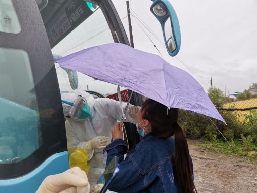省醫(yī)院南崗院區(qū)中心手術(shù)室護(hù)士趙明裕,中秋節(jié)當(dāng)天下午正在家中給八歲的大女兒過生日,接到通知需要支援巴彥縣核酸采集,親了親身邊的大女兒和四歲的小女兒,立即驅(qū)車前往醫(yī)院。到達(dá)巴彥后,趙明裕被分到后山鄉(xiāng),三人小組同組另兩位隊(duì)員都是年過40歲的大姐,已經(jīng)是預(yù)備黨員的趙明裕想想自己年輕一定要多干些,主動(dòng)請纓承擔(dān)了更多的工作。當(dāng)天,三人共完成了五個(gè)村屯近600人的采集,外面陰雨綿綿,氣溫驟降,手消涂在手套上,全手掌冰涼的感覺讓趙明裕本就著裝不多的身體愈發(fā)冰冷,但想到臨行前醫(yī)院同事一次次的叮嚀與囑托,她心中堅(jiān)信,抗疫必勝。同時(shí)當(dāng)?shù)卮迕竦臒崆橐沧屭w明裕的心里暖暖的,后山鄉(xiāng)政府的工作人員和人民群眾都非常積極的配合,尤其是老人和小孩,并沒有由于天氣陰雨綿綿的原因而不配合,都在鄉(xiāng)領(lǐng)導(dǎo)的指揮下,井然有序的配合著。