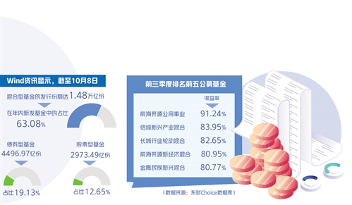 今年前三季度,公募基金整體業(yè)績表現(xiàn)優(yōu)異。金牛理財網(wǎng)統(tǒng)計顯示,今年前三季度,納入統(tǒng)計的主動權(quán)益基金(主動股票基金673只、混合型基金5634只)平均收益率為6.48%,200余只公募開放式基金收益率超過30%,其中,53只基金收益率超過50%,22只基金收益率超過60%,14只基金收益率逾70%。