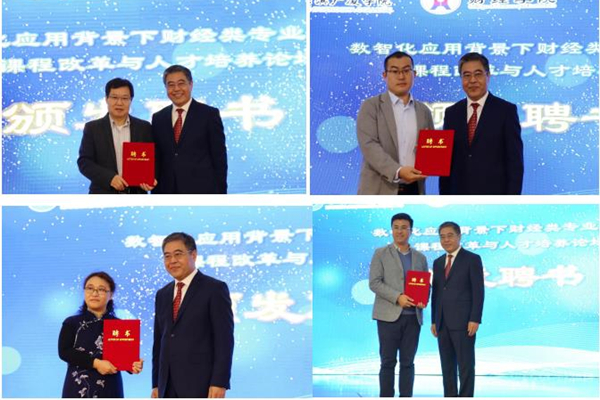 陳西峰為山東財(cái)經(jīng)大學(xué)會(huì)計(jì)學(xué)院院長(zhǎng)王愛國教授、華僑大學(xué)工商管理學(xué)院博士生導(dǎo)師楊洪濤教授、哈爾濱工程大學(xué)經(jīng)濟(jì)管理學(xué)院博士生導(dǎo)師楊忠海教授頒發(fā)客座教授聘書,為財(cái)智未來(北京)教育科技有限公司總監(jiān)聶鑫、中聯(lián)集團(tuán)教育科技有限公司產(chǎn)教融合事業(yè)部總監(jiān)侯劉成頒發(fā)企業(yè)導(dǎo)師聘書。