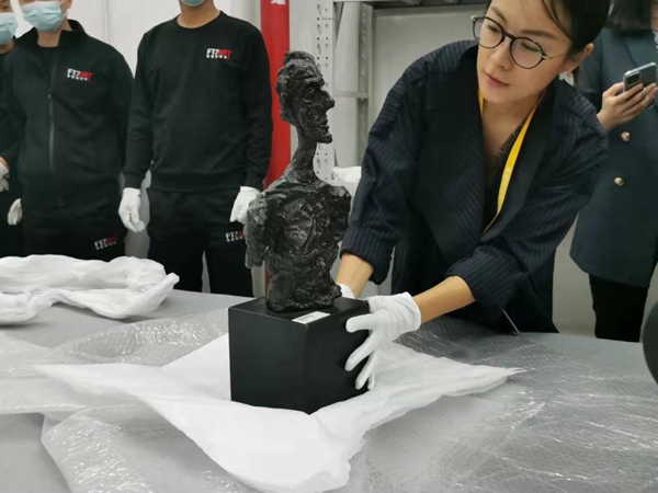 蘇富比為第四屆進(jìn)博會(huì)帶來(lái)賈柯梅蒂的《戴亞高的半身像》 新華社記者桑彤 攝