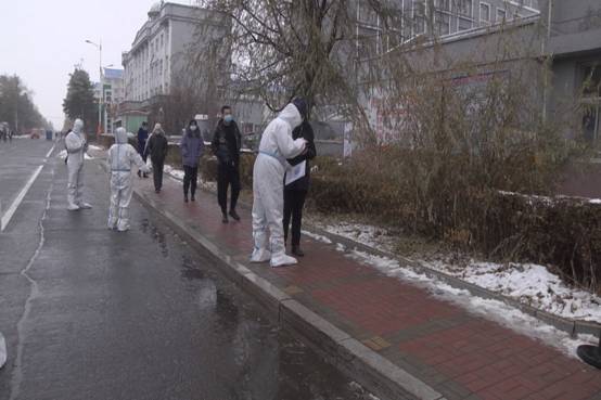 演練當(dāng)天,飛舞的雪花為呼瑪?shù)慕诸^披上了一層白紗。在呼瑪鎮(zhèn)部分核酸檢測點,檢測人員兩兩一組、一字排開,排隊等候區(qū)被拉上了圍欄,由社區(qū)人員、警察、黨員干部組成的志愿者隊伍在現(xiàn)場有序登記,引導(dǎo)和維護(hù)秩序,保證了群眾前來檢測過程中順暢清晰、不聚集。