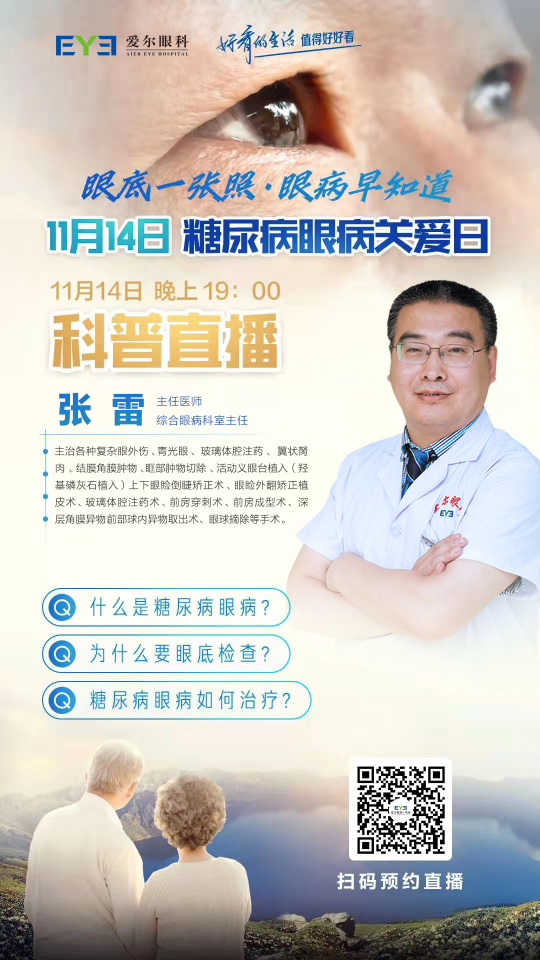 為提高糖尿病患者對糖尿病眼病的認知、加強自我保健意識,雞西愛爾眼科醫(yī)院將11月14日晚19:00舉辦糖尿病眼病關(guān)愛視頻號直播,通過科普講座與答疑互動的方式,全面講解糖尿病眼病的相關(guān)知識,幫助您和家人解決眼健康煩惱。