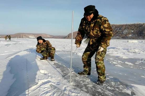 為進(jìn)一步做好防境外疫情輸入工作,最大限度的保護(hù)好人民群眾的生命健康安全,當(dāng)?shù)卣疀Q定在界江沿線架設(shè)防疫隔離墻,阻擋境外物種帶入病毒。紅星林場(chǎng)在接到任務(wù)后,迅速組織人力物力投入戰(zhàn)斗。冰封的江面在冬季暗藏危機(jī),看似一平如鏡的冰下有很多封凍時(shí)形成的漏斗,白雪覆蓋下的區(qū)域更是潛藏著無(wú)數(shù)的冰縫,一腳踏進(jìn)去就會(huì)造成嚴(yán)重的扭傷,而在冰面上放線拉網(wǎng)需要每天抬著幾十斤的鐵蒺藜線軸往返十幾里路程,行進(jìn)在冰面路段上一步一滑,加固鐵線時(shí)還要時(shí)刻小心不被鐵蒺藜劃傷,鉆孔、插樁也要時(shí)刻防止產(chǎn)生大面積的冰裂。