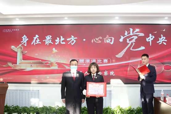 9名參賽選手隊(duì)相繼登臺,將演講內(nèi)容與背景音樂、PPT展示相結(jié)合,圖文并茂,形式新穎,感染力強(qiáng)。演講中,選手們緊緊圍繞“身在最北方·心向黨中央”這一主題,用誠摯飽滿的熱情、激情澎湃的語言講述了自己的心得和感悟、講述了黨的誕生、成長、奮斗的艱難歷程,用生動的故事詮釋了黨勇?lián)鷷r(shí)代重任的魄力和為人民服務(wù)的宗旨,用豪邁的激情抒發(fā)著對黨的忠誠、對祖國的熱愛和對共產(chǎn)主義的堅(jiān)定信仰。同時(shí),結(jié)合自身實(shí)際,展現(xiàn)了檢察機(jī)關(guān)干警愛崗敬業(yè)、為民執(zhí)法的精神和情懷,表達(dá)了對黨的事業(yè)和檢察工作的拳拳之情。整個(gè)比賽氣氛熱烈、精彩紛呈,選手們的深情演說感染了現(xiàn)場每位評委和觀眾,贏得了陣陣熱烈掌聲。