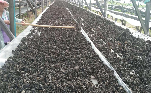 圖為新林林業(yè)局木耳養(yǎng)殖戶喜獲豐收,職工正在晾曬木耳(董淑玲 攝)