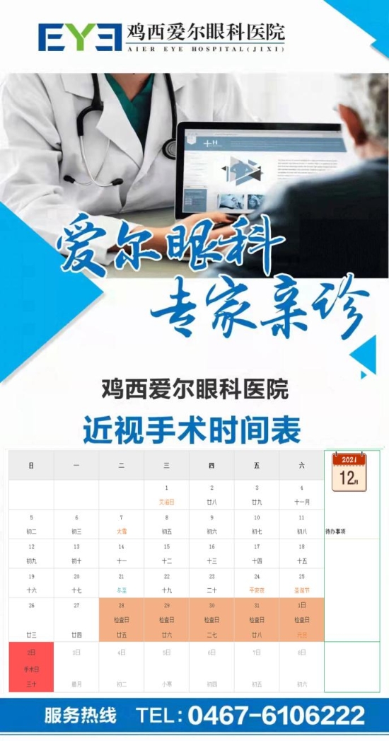 雞西愛爾眼科醫(yī)院近視手術(shù)時(shí)間表: