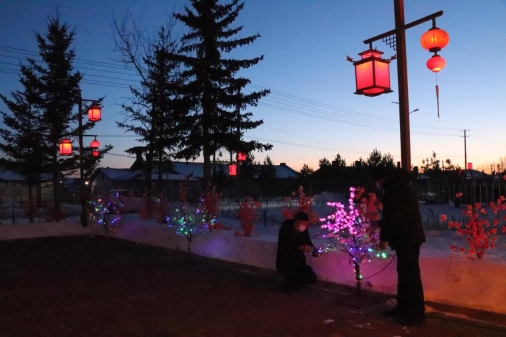 走進(jìn)依西肯林場(chǎng)辦事處,映入眼簾的是寬敞整潔的場(chǎng)院,充滿中國(guó)元素的復(fù)古紅燈籠,白色的雪墻襯托著粉色、紅色的手工插花,渾然一體,美輪美奐。當(dāng)夜幕降臨,五彩相間的霓虹流光溢彩,顯得格外奪目,交相輝映,燈光閃耀,年味十足,處處洋溢著喜慶的味道,更是將元旦、春節(jié)喜慶、祥和的氛圍渲染得淋漓盡致,讓人忍不住駐足觀賞。