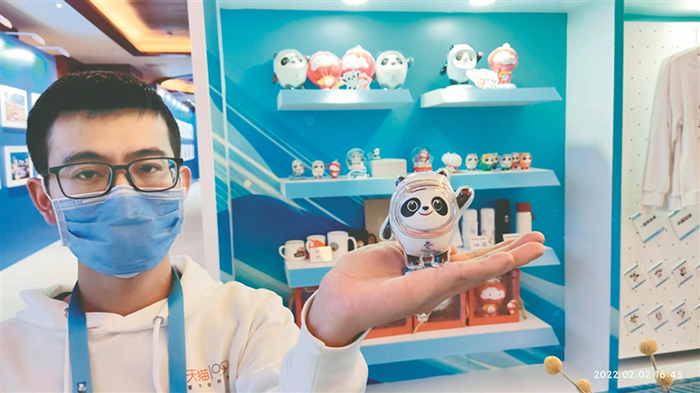 在新聞中心一樓中庭及走廊設(shè)有2022年冬奧會(huì)熱銷(xiāo)特許商品展區(qū),為媒體提供線上定制和購(gòu)買(mǎi)特許商品服務(wù)。遺憾的是經(jīng)過(guò)1日一天的熱賣(mài),幾乎所有“冰墩墩”玩偶都已告罄,可見(jiàn)媒體記者也敵擋不住超級(jí)可愛(ài)的冰墩墩的魅力。