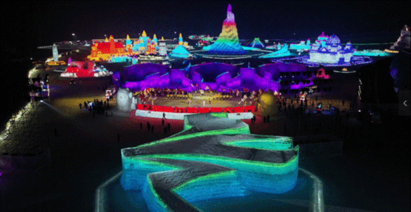 據了解,今年的哈爾濱冰雪大世界以“冬奧之光 閃耀世界”為主題,助力實現“帶動三億人參與冰雪運動”的愿景。冰雪大世界通過打造冰雪童話王國傳遞冬奧精神,園區(qū)內的主體景觀都蘊含著冬奧元素。從入園口到主塔“圣火之巔”的軸線上,北京2022年冬奧會會徽、吉祥物以及奧運五環(huán)等景觀有序排布,游客們不但可以賞冰樂雪,還能夠直觀感受到冬奧魅力。