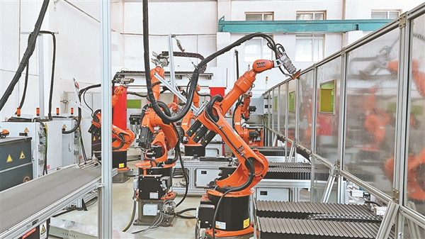 齊齊哈爾黑龍國(guó)際冰雪裝備有限公司生產(chǎn)車間,焊接機(jī)器人大幅度提高生產(chǎn)效率。