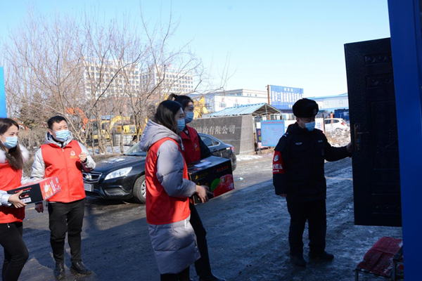 樺川縣稅務局組成青年志愿服務隊,攜帶保溫杯、熱水、水果等慰問品,深入樺川縣入口防疫卡點,慰問堅守在疫情防控一線的工作人員。青年志愿者們詳細詢問卡點防寒保暖、飲食安排等情況,對他們舍小家為大家、無私奉獻、敢于擔當?shù)木窠o予高度贊揚,向他們送去關心和問候,叮囑他們做好自身防護,合理安排休息時間。