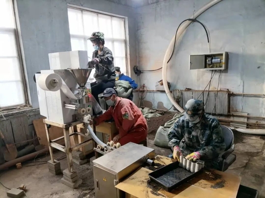 根據(jù)設備操作指南,呼中林業(yè)局中心苗圃從3月中旬便開始著手生產(chǎn)作業(yè),工作中他們采用機械與人工相結(jié)合的方式,每天加班加點、技術(shù)人員跟班作業(yè)。同時,為加快生產(chǎn)進度,他們還租用一臺挖掘機,將凍土原料運送到圃內(nèi)大棚,并用燒爐解凍烘干的方法,與珍珠巖肥料按一定比例混合成基制,再用機器灌裝成型,每日生產(chǎn)可達8000余個。截至目前,已完成輕基質(zhì)容器育苗杯生產(chǎn)10萬+。