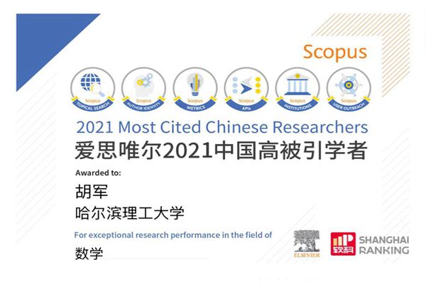 黑龍江經(jīng)濟網(wǎng)訊(黑龍集日報全媒體見習(xí)記者董廣碩 商祺)近日,全球信息分析公司愛思唯爾(Elsevier)正式發(fā)布了2021“中國高被引學(xué)者”(Highly Cited Chinese Researchers)榜單。哈爾濱理工大學(xué)自動化學(xué)院院長、博士生導(dǎo)師胡軍教授在數(shù)學(xué)學(xué)科領(lǐng)域連續(xù)兩年入選高被引學(xué)者。本次全國共有140位學(xué)者入選本次數(shù)學(xué)學(xué)科領(lǐng)域榜單,黑龍江入選4位。胡軍教授蟬聯(lián)榜單展現(xiàn)了他在數(shù)學(xué)及相關(guān)交叉學(xué)科領(lǐng)域的重要貢獻和廣泛學(xué)術(shù)影響力。