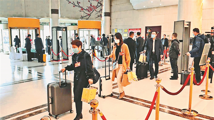 記者在各個(gè)代表團(tuán)駐地了解到,各項(xiàng)工作正在有序進(jìn)行。前來報(bào)到的代表團(tuán)嚴(yán)格落實(shí)疫情防控要求,提前領(lǐng)取代表出席證和門卡,代表們自覺佩戴口罩,執(zhí)行掃碼、測(cè)溫、核酸檢測(cè)等防控措施。報(bào)到入住后,許多代表顧不得休息,第一時(shí)間熟悉會(huì)議議程和相關(guān)安排,準(zhǔn)備自己的討論發(fā)言材料。