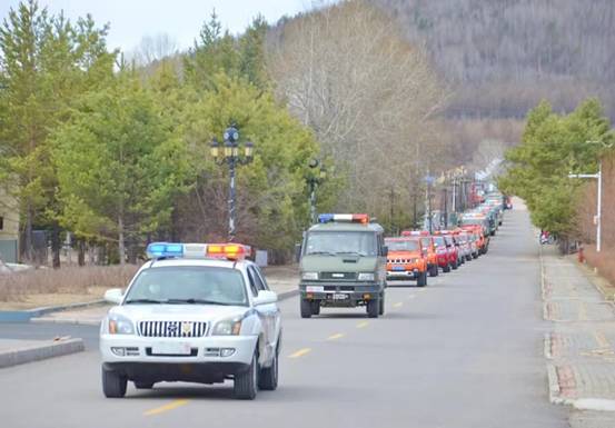 8時(shí)58分,在警笛的長鳴聲中,宣傳活動(dòng)正式開始。由警車,森防運(yùn)兵車、機(jī)具車等37臺(tái)車輛組成了聲勢(shì)浩大的巡游車隊(duì),沿新林鎮(zhèn)人民路出發(fā)環(huán)城巡游,一路鳴笛警示,提高職工群眾防火意識(shí),做到警鐘長鳴,擴(kuò)大森林防火宣傳面。