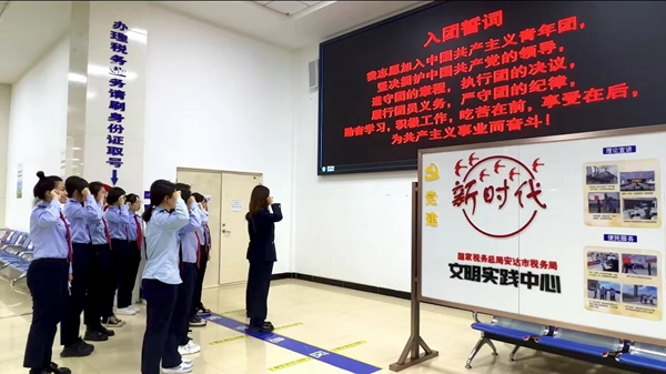 重溫入團(tuán)誓詞,匯聚青春力量。為進(jìn)一步引導(dǎo)廣大團(tuán)員青年厚植愛國、愛黨、愛稅收事業(yè)的深厚情感,進(jìn)一步增強(qiáng)團(tuán)支部的組織力量,安達(dá)市稅務(wù)局團(tuán)支部開展重溫入團(tuán)誓詞活動(dòng),在莊嚴(yán)的團(tuán)歌聲中,11名安達(dá)市稅務(wù)局奮戰(zhàn)在稅收一線的團(tuán)員干部在團(tuán)支部書記的帶領(lǐng)下,面向誓詞莊嚴(yán)宣誓。宣誓完畢后,安達(dá)稅務(wù)青年紛紛表示,將立足本職、埋頭苦干,用一流的業(yè)務(wù)能力為納稅人繳費(fèi)人帶來一流的納稅服務(wù)體驗(yàn),為安達(dá)稅收事業(yè)奉獻(xiàn)青春力量。