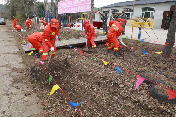 開設(shè)防火隔離帶,是阻擋火源的有效方法。依東林場將環(huán)境衛(wèi)生整治與防火科目結(jié)合起來,在門前擺下擂臺(tái),拉出橫線設(shè)立分區(qū),六組隊(duì)員進(jìn)入場地爭分奪秒、互不相讓,有的耙、有的裝,一會(huì)功夫一條干凈、規(guī)范的“隔離帶”出現(xiàn)在眼前。