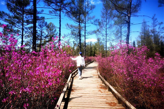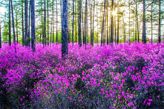 據了解,每年四月末、五月初杜鵑花都會如期綻放,因為今年氣溫較低興安杜鵑盛開的周期較往年延后,5月中旬達到盛花期,花期可持續(xù)一周左右。