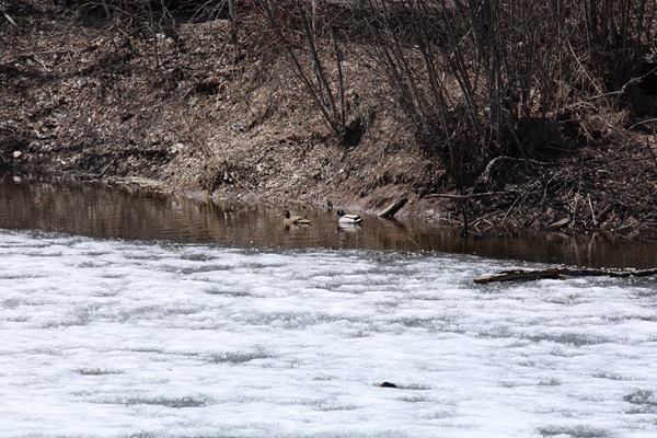 四月底雪還沒(méi)有完全融化,挺過(guò)寒冬的北噪鴉“小夫妻”開(kāi)始筑巢繁育后代,綠頭鴨等飛禽迫不及待地飛回家鄉(xiāng)。