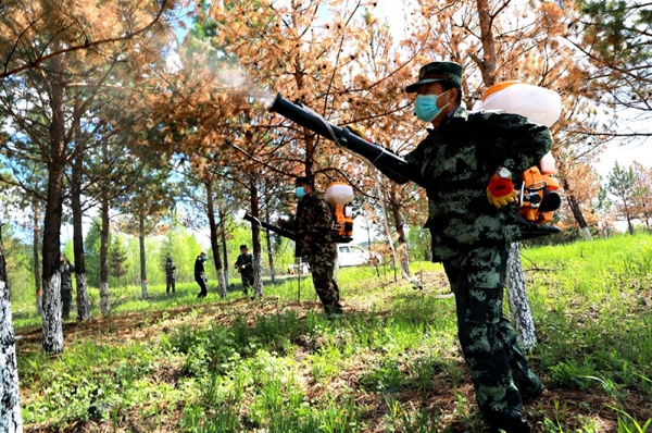 為了確保森林資源健康,阿木爾林業(yè)局病防站采取噴霧、剪枝措施,對局址周邊綠化樹木進(jìn)行防治,防治面積2000畝。