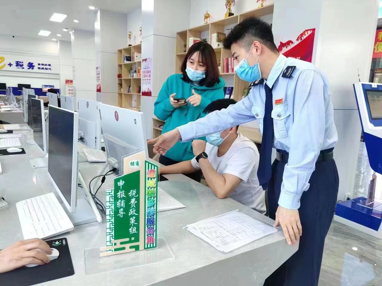 服務(wù)角暖人心,“政策直達(dá)”快起來(lái)。為實(shí)現(xiàn)新的組合式稅費(fèi)支持政策直達(dá)快享,該局在辦稅服務(wù)廳開(kāi)設(shè)退稅減稅功能服務(wù)專(zhuān)區(qū),在醒目位置設(shè)置“退稅減稅多彩服務(wù)角”“先鋒云坐席”。退稅減稅多彩服務(wù)角,細(xì)化分為六個(gè)功能服務(wù)角: 政策宣傳紅角、難點(diǎn)攻堅(jiān)藍(lán)角、申報(bào)輔導(dǎo)綠角、退稅審批金角、暖心服務(wù)橙角和意見(jiàn)征集紫角,由多彩黨員先鋒隊(duì)中的各部門(mén)、各支部業(yè)務(wù)骨干(紅、藍(lán)、綠、金、橙、紫先鋒)輪流進(jìn)駐各個(gè)服務(wù)角,分別開(kāi)展專(zhuān)項(xiàng)退減稅服務(wù),做到按企施策到位、優(yōu)惠政策直達(dá)到位、精簡(jiǎn)流程服務(wù)到位,“真金白銀”快享到位?!跋蠕h云坐席”由辦稅服務(wù)廳2個(gè)黨員先鋒崗組成,專(zhuān)職負(fù)責(zé)線上退稅減稅服務(wù)。退稅減稅功能服務(wù)專(zhuān)區(qū)的建立,既做到了內(nèi)部協(xié)同,又兼顧了內(nèi)外銜接;既做到了“在大廳專(zhuān)區(qū)有專(zhuān)人快速辦理退稅減稅專(zhuān)事”,又打通了面向社會(huì)的服務(wù)通道。