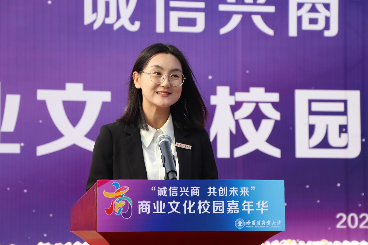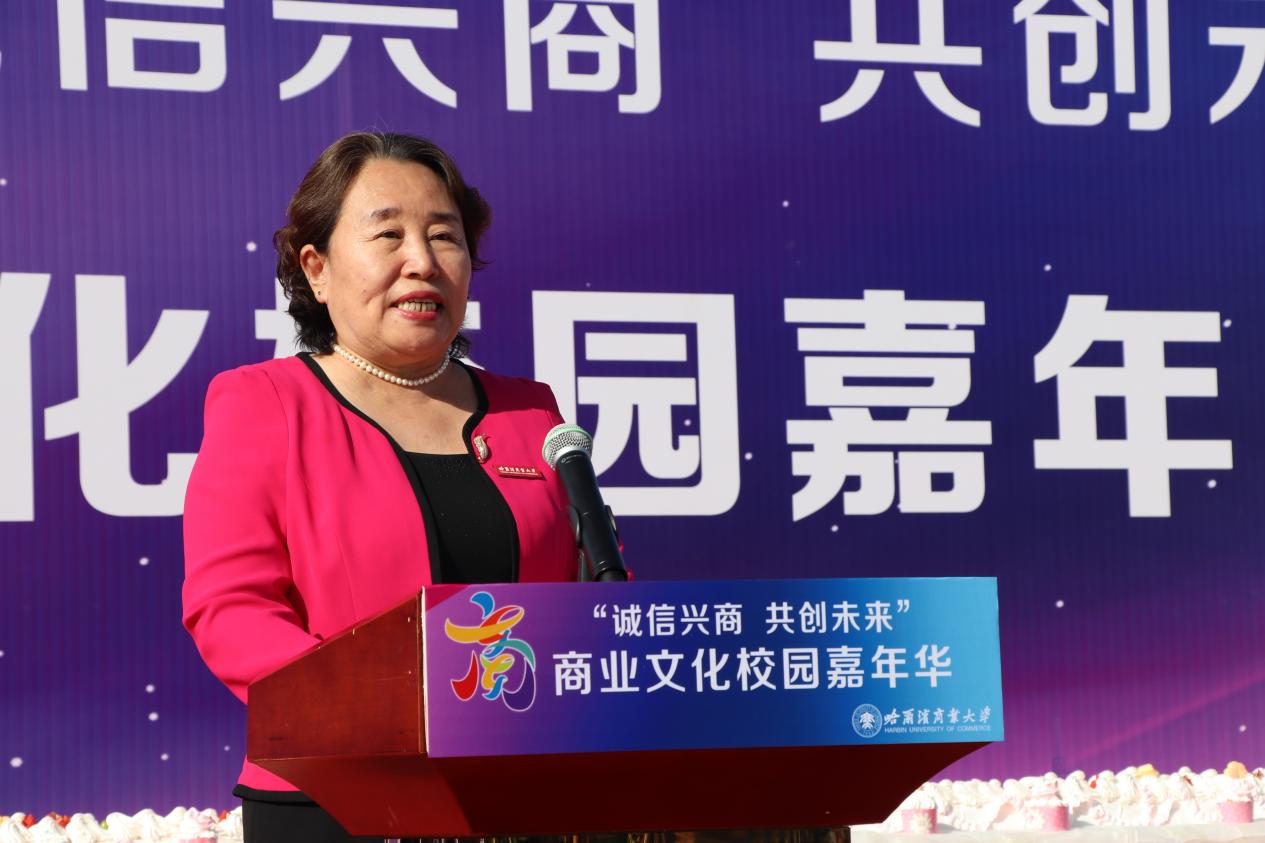 哈爾濱商業(yè)大學(xué)黨委書記孫先民致辭。他表示,誠(chéng)信“軟實(shí)力”為高質(zhì)量發(fā)展提供“硬支撐”。本屆“誠(chéng)信興商·共創(chuàng)未來”商業(yè)文化校園嘉年華活動(dòng)堅(jiān)持以文化力量啟智潤(rùn)心、固本培元,是深入學(xué)習(xí)貫徹習(xí)近平總書記在主持召開新時(shí)代推動(dòng)?xùn)|北全面振興座談會(huì)和視察我省時(shí)的重要講話重要指示精神,全面落實(shí)立德樹人根本任務(wù)的務(wù)實(shí)舉措。哈爾濱商業(yè)大學(xué)作為新中國(guó)第一所多科性商業(yè)大學(xué),始終堅(jiān)持“大商鑄才、大雅育人、商雅兼?zhèn)?、?jīng)世濟(jì)民”的育人理念,厚植師生“心懷祖國(guó),至誠(chéng)奉獻(xiàn),以商弘業(yè),矢志一流”的大商之道?;顒?dòng)將充分發(fā)揮老字號(hào)在文化引領(lǐng)、品牌建設(shè)、產(chǎn)業(yè)升級(jí)等方面的示范引領(lǐng)作用,彰顯龍江市場(chǎng)主體活力與創(chuàng)新力,聚焦建設(shè)“六個(gè)龍江”、推進(jìn)“八個(gè)振興”,筑牢堅(jiān)定龍江文化繁榮發(fā)展的自信根基,進(jìn)一步凝聚師生扎根龍江、服務(wù)龍江、建設(shè)龍江的情懷和力量。