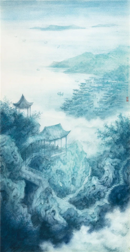 薛磊 青城嵐煙 234cm×123cm 國(guó)畫(huà)