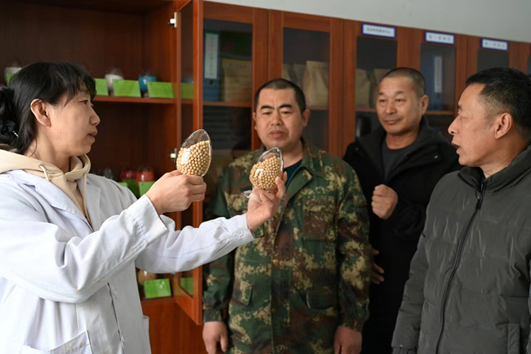 在會上踴躍發(fā)言的是第三管理區(qū)種植戶閆喜君。這位經(jīng)營管理著5400畝耕地,有家庭成員22戶的規(guī)模家庭農(nóng)場場長可對不同品種大豆的種植密度、輪作成果、土壤處理等科技問題十分關(guān)注,同時也把在實際種植過程中遇到的好經(jīng)驗、好做法分享給了大家。