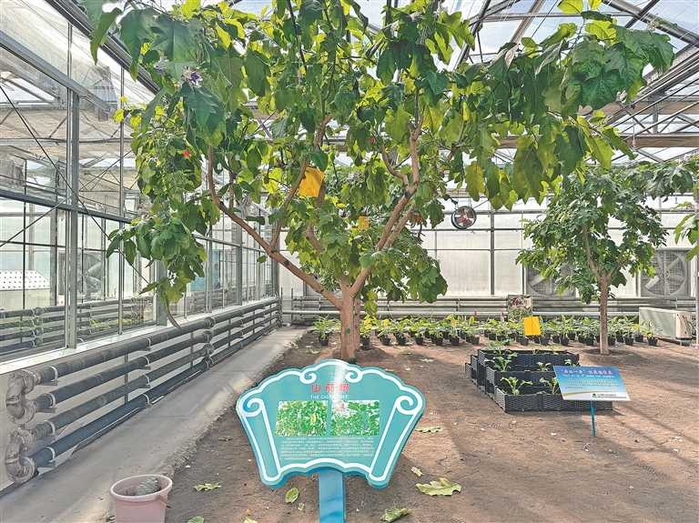 “我們引進了華中農(nóng)業(yè)大學(xué)歷時13年研發(fā)的超級物種系列核心產(chǎn)品——山茄樹,它可以實現(xiàn)一年多產(chǎn),四季結(jié)果,是常規(guī)產(chǎn)量的2至5倍。種植一次,可收益多年,社會效益和經(jīng)濟效益十分可期?!逼咝欠止究萍紙@區(qū)副主任汪敏介紹說。