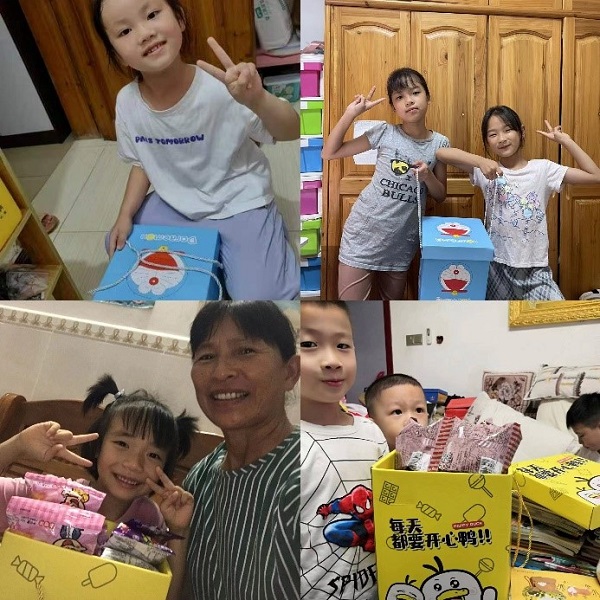 孩子們收到順豐同城的“希望包裹”(“騎士”家庭供圖)