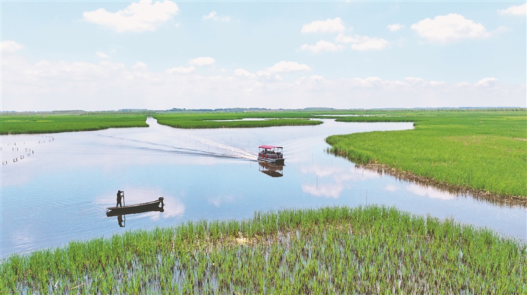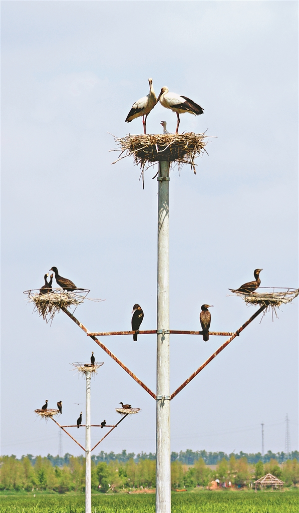 作為松花江流域保存完整、濕地多樣性特征顯著的天然遺跡,千鶴島濕地水草茂盛,魚類繁多,成為鳥類繁衍生息的天然場所。據風景區(qū)工作人員介紹,由于濕地內植被資源保護完好,每年都吸引大量候鳥來此繁衍生活,且數量逐年增加。特別是今年搭建38個人工鳥巢后,濕地內的東方白鸛數量達到300余只,成為國內數量最多的棲息種群。
