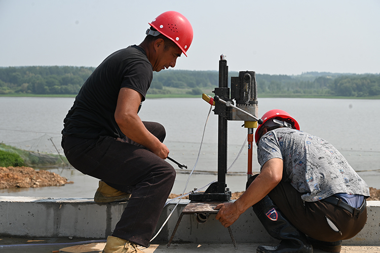 在引龍河農(nóng)場(chǎng)有限公司青年水庫(kù)除險(xiǎn)加固工程施工現(xiàn)場(chǎng),機(jī)器轟鳴,施工現(xiàn)場(chǎng)對(duì)大壩固腳及安全圍欄施工作業(yè),增強(qiáng)壩基防滲能力,消除大壩防洪隱患。同時(shí)與施工、設(shè)計(jì)部門(mén)一同研究,采用增設(shè)防滲膜圍堰措施,加快施工進(jìn)度,制定了趕工計(jì)劃,倒排工期,確保汛限水位以下部分在主汛期來(lái)臨前全部完成。此外,現(xiàn)場(chǎng)還有督導(dǎo)組對(duì)水庫(kù)除險(xiǎn)加固工程進(jìn)行檢查。