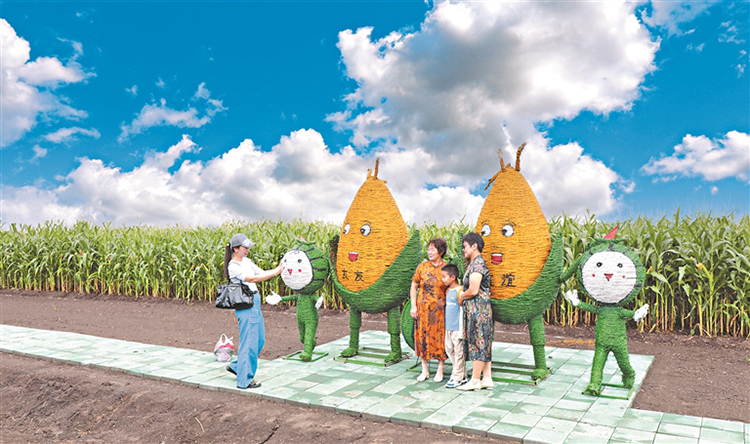 走進(jìn)北大荒集團(tuán)江川農(nóng)場(chǎng)的稻作文化展示區(qū),一幅五彩斑斕的畫卷便在眼前徐徐展開。那一片片稻田中,“北大荒第一鐮”訴說著曾經(jīng)的輝煌與勤勞;可愛的米娃IP形象,或“垂釣”,或與蛙鳴“相伴”,或“見證”鯉魚騰飛,還有珍稀鳥類在其間嬉戲,仿佛構(gòu)成了一個(gè)充滿童話色彩的世界?!蚌蔚咎铩眲t展現(xiàn)著企業(yè)合作的強(qiáng)大力量,寓意著共同發(fā)展、共創(chuàng)輝煌。
