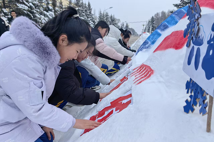 在銀裝素裹的校園里,師生們充分發(fā)揮想象力和創(chuàng)造力,一起堆雪、塑型、裝飾,在制作過(guò)程中,他們紛紛拿起手中的工具,鏟、挖、雕、刻,全神貫注地投入到雪雕創(chuàng)作中。轉(zhuǎn)眼間,一個(gè)個(gè)形態(tài)各異、栩栩如生的雪雕作品誕生,為冬日的校園增添了一份別樣的詩(shī)情畫(huà)意,也飽含著全體師生對(duì)亞冬會(huì)的美好祝福和對(duì)冰雪運(yùn)動(dòng)的熱愛(ài)。